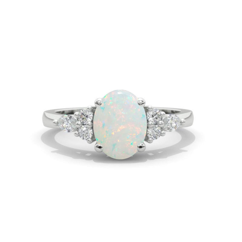 3 Carat Oval Genuine Natural White Opal Engagement Ring - Giliarto
