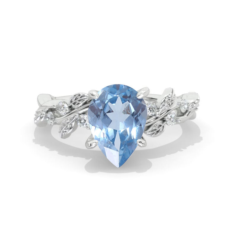 The default design option features 11x7mm Pear Genuine Aquamarine AAA+ Quality Center Stone, VVS1-Clarity, VG-Cut, Ex-Polish, VG-Symmetry