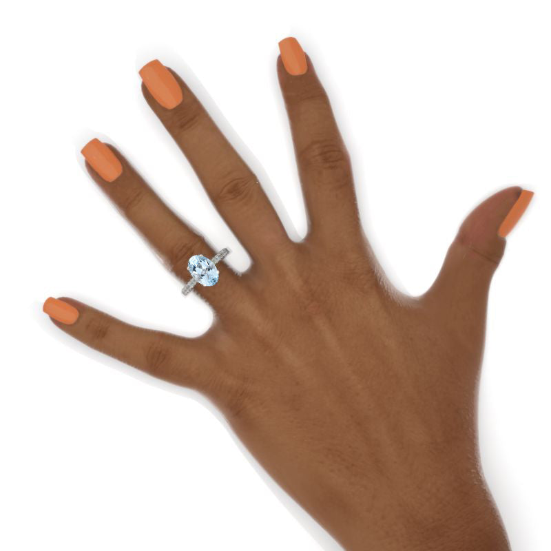 4 Carat Oval Cut Genuine Aquamarine Hidden Halo White Gold Engagement - Giliarto