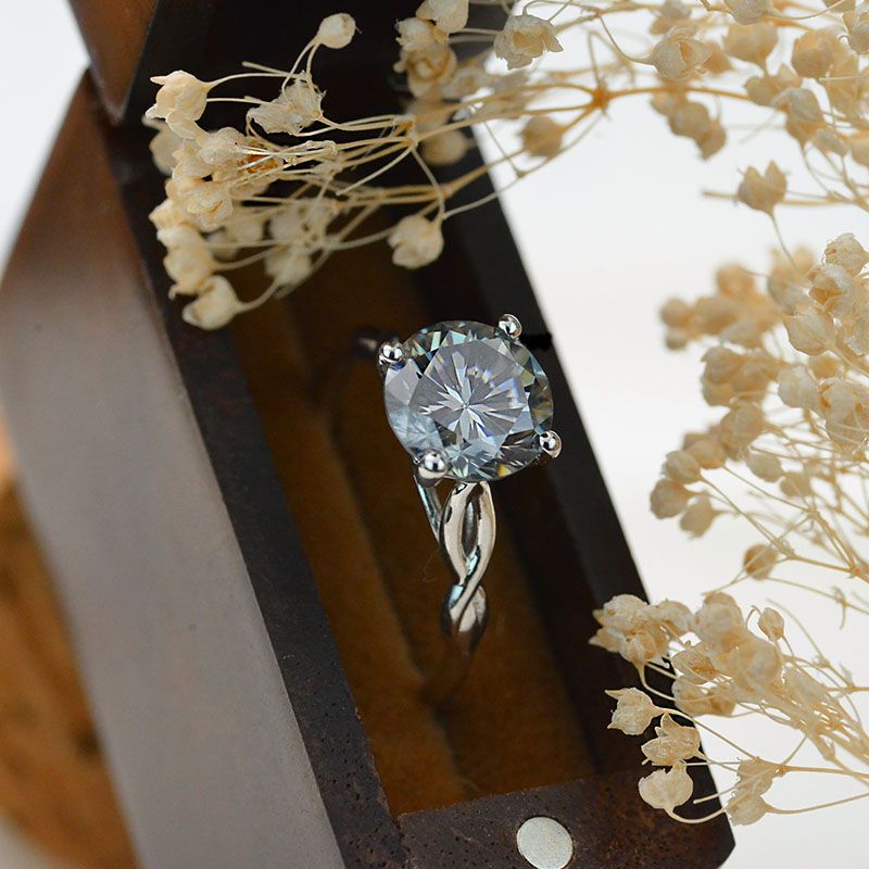 2 Carat Moissanite (Round 8 mm, Dark Gray-Blue D-Colorless, VVS1-Clarity, Ex-Cut, Ex-Polish, VG-Symmetry)  in 14K White Gold Ring.Â