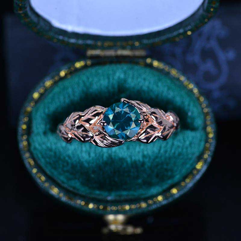 Cornflower Sapphire Leaf Engagement Ring 14K Rose Gold