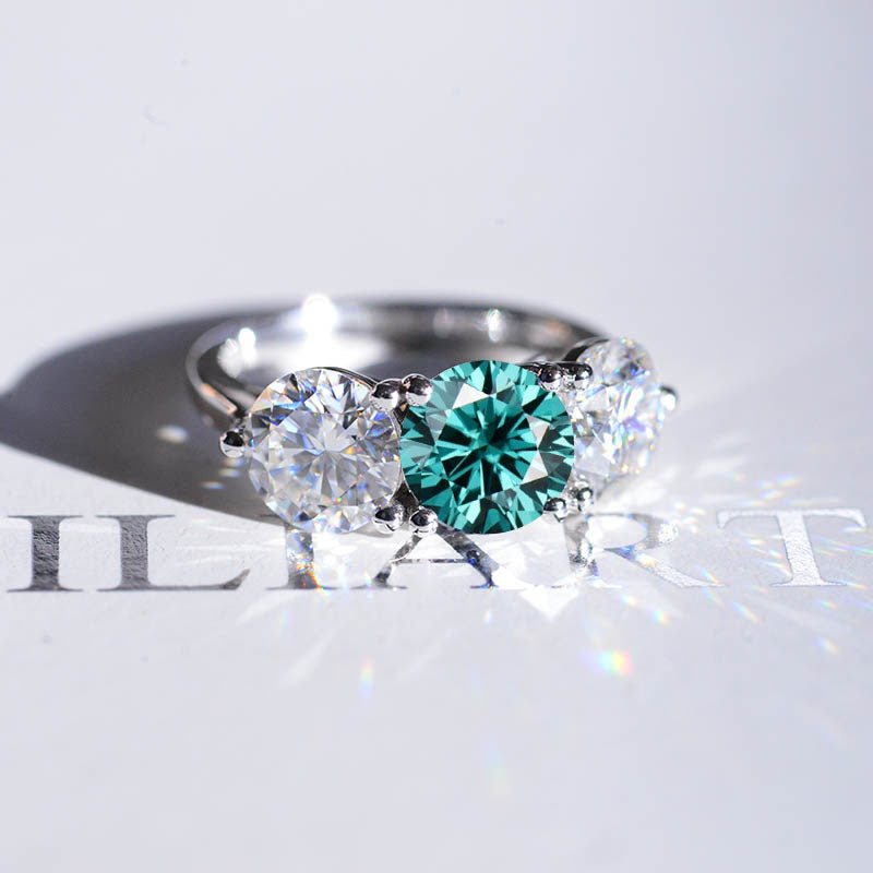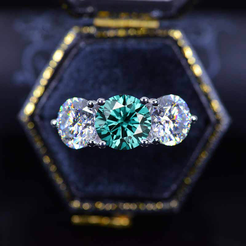 ''Courtney'' 2 Carat Green Moissanite Three Stones Engagement Ring - Giliarto