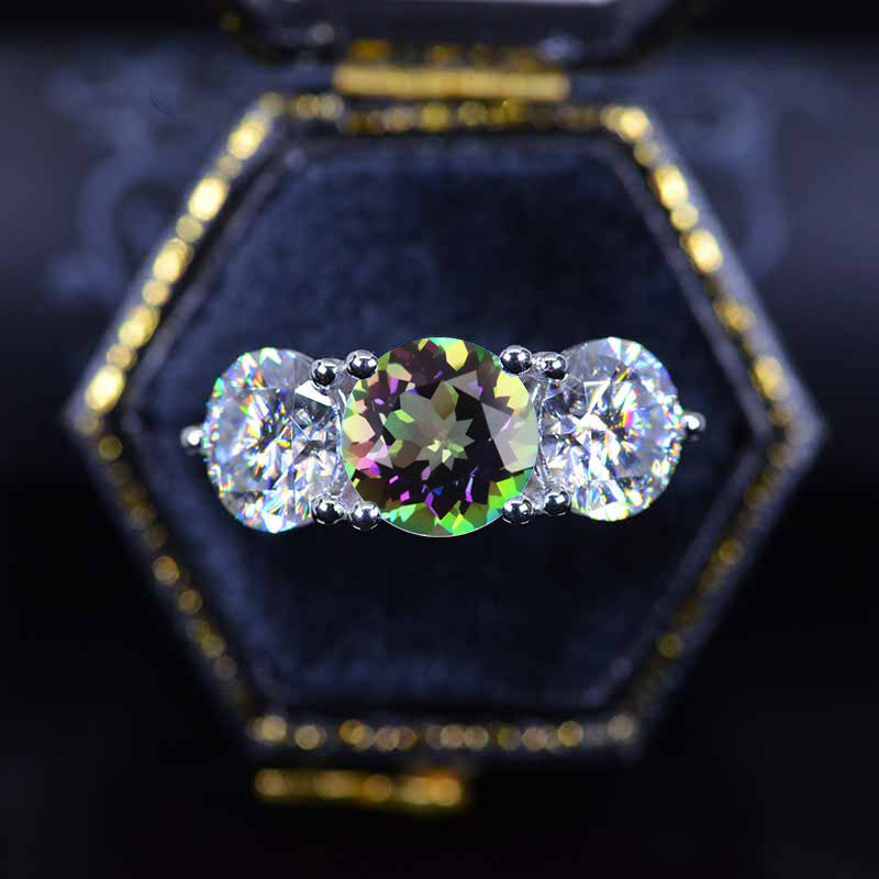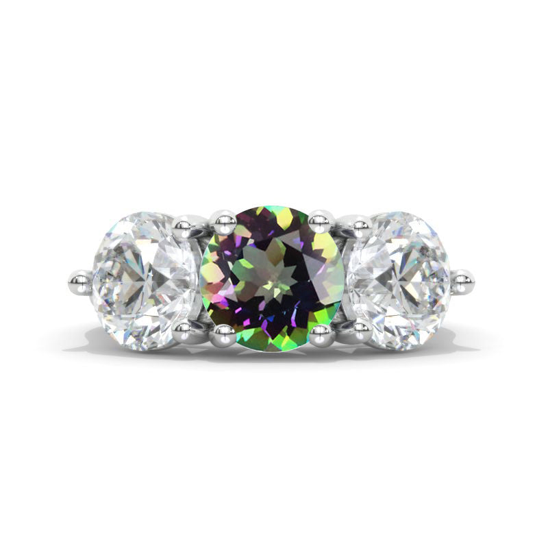 ''Courtney'' 2 Carat Mystic Topaz Three Stones Engagement Ring - Giliarto
