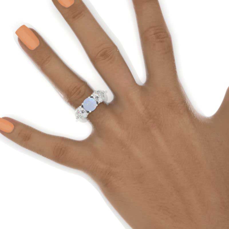 ''Courtney'' 2 Carat White Opal Three Stones Engagement Ring