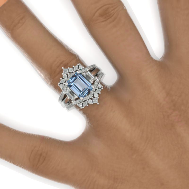 The default design option features Micro Pave 0.6 CTW Genuine Natural Aquamarine AAA+ Grade,  Stones, VG-Cut, Ex-Polish, VG-Symmetry