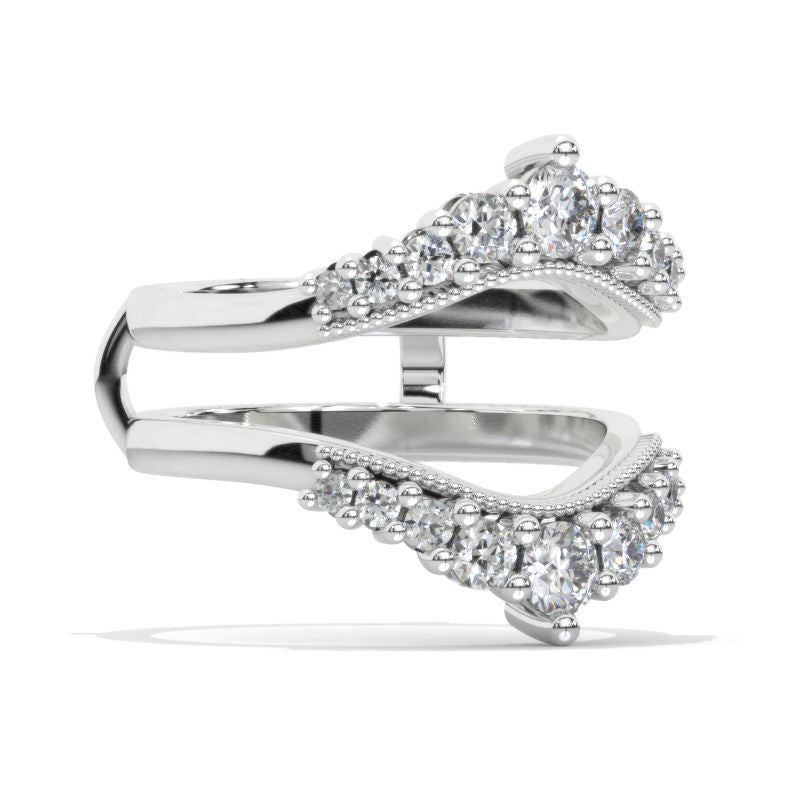 The default design option features Micro Pave 0.6 CTW Moissanite Stones, D-Colorless, VVS1-Clarity, VG-Cut, Ex-Polish, VG-Symmetry