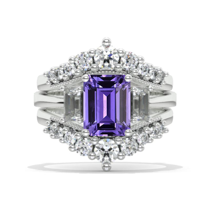 Curved V Double Band Pave Purple Sapphire Double Ring Insert 14K White - Giliarto