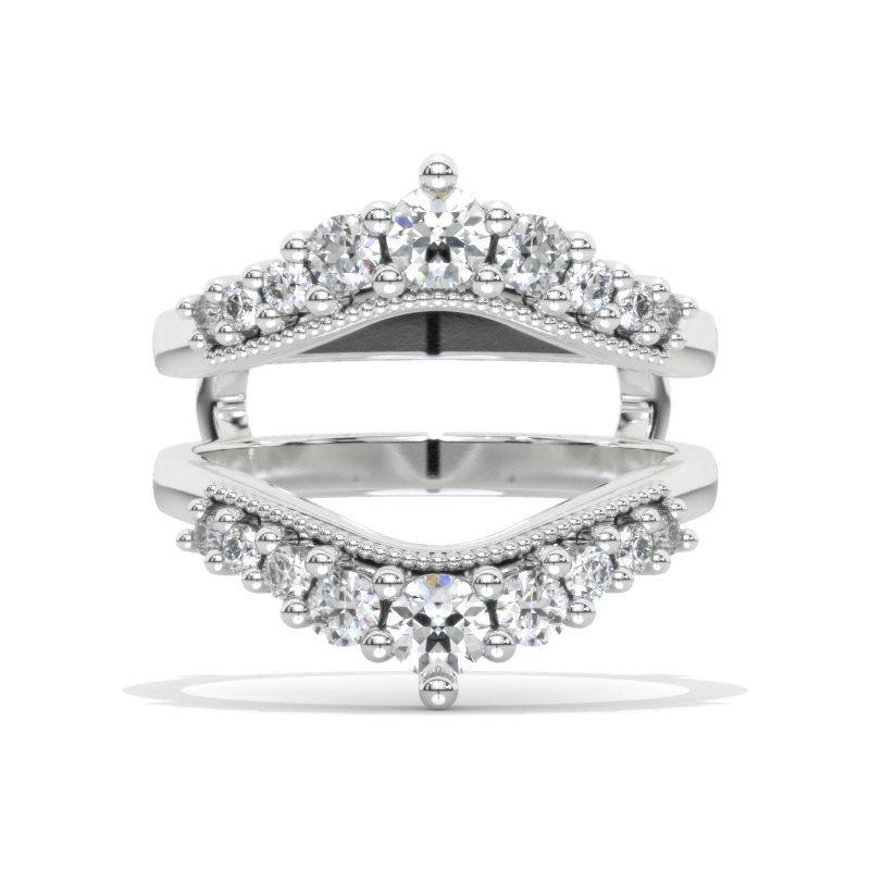 Curved V Double Band Pave Teal Sapphire Double Ring Insert 14K White Gold