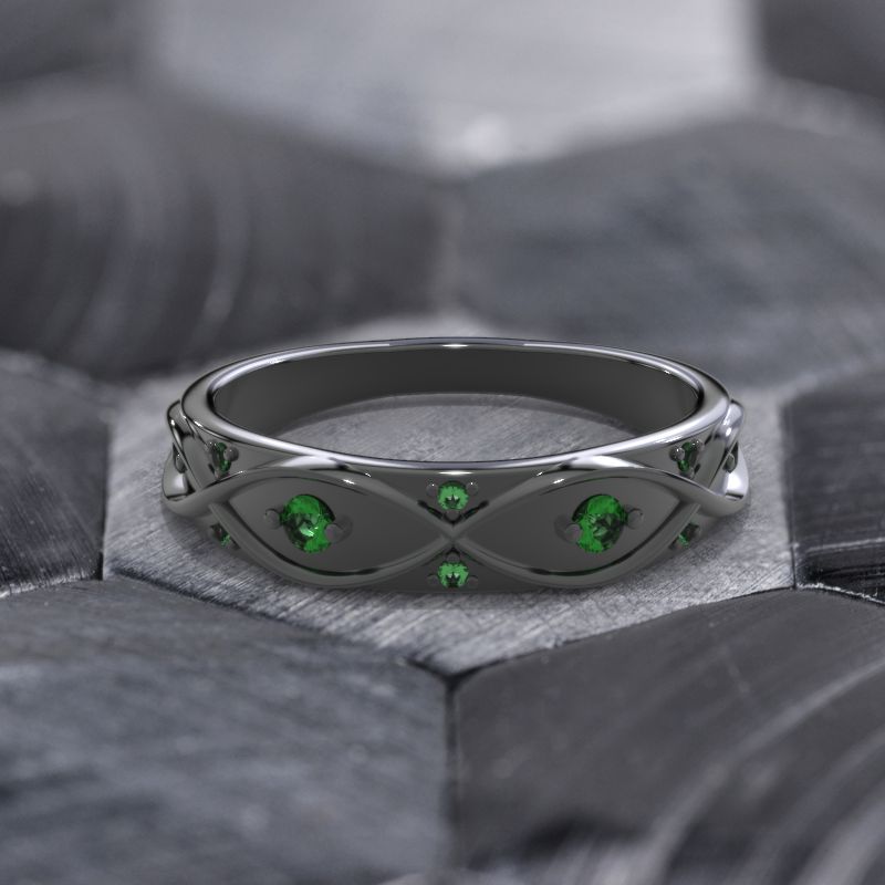 Custom Celtic Emerald Wedding 14K Black Gold Ring - Giliarto