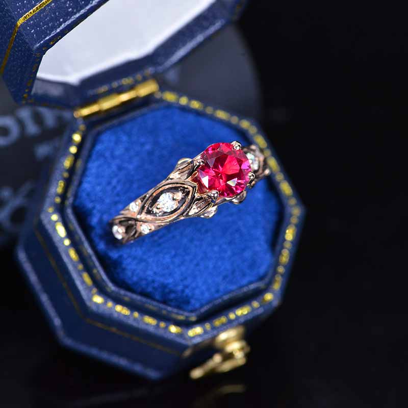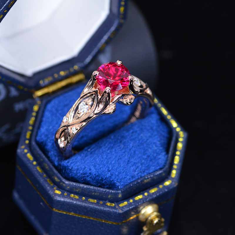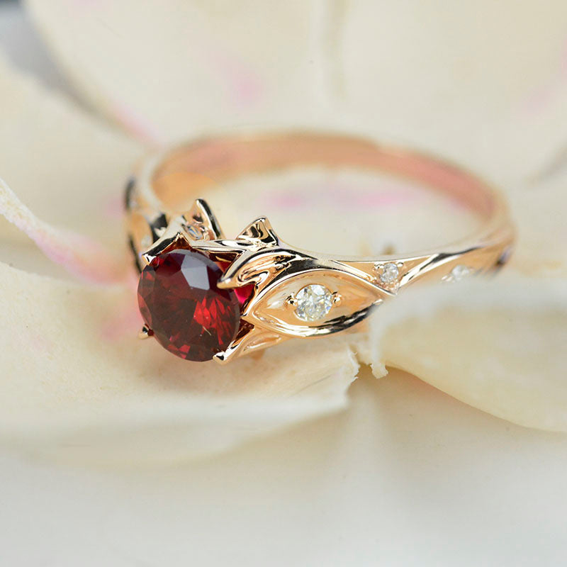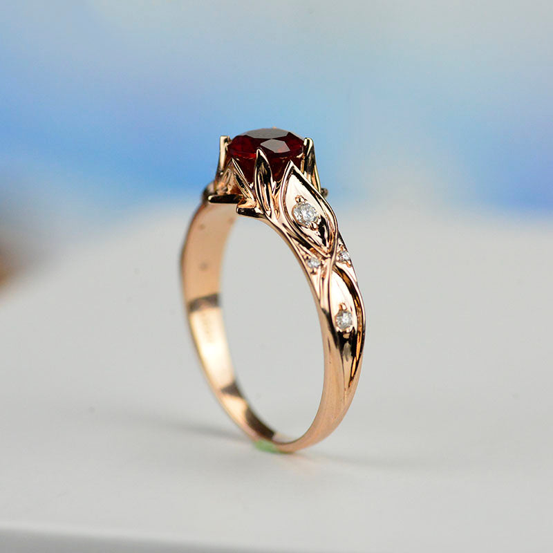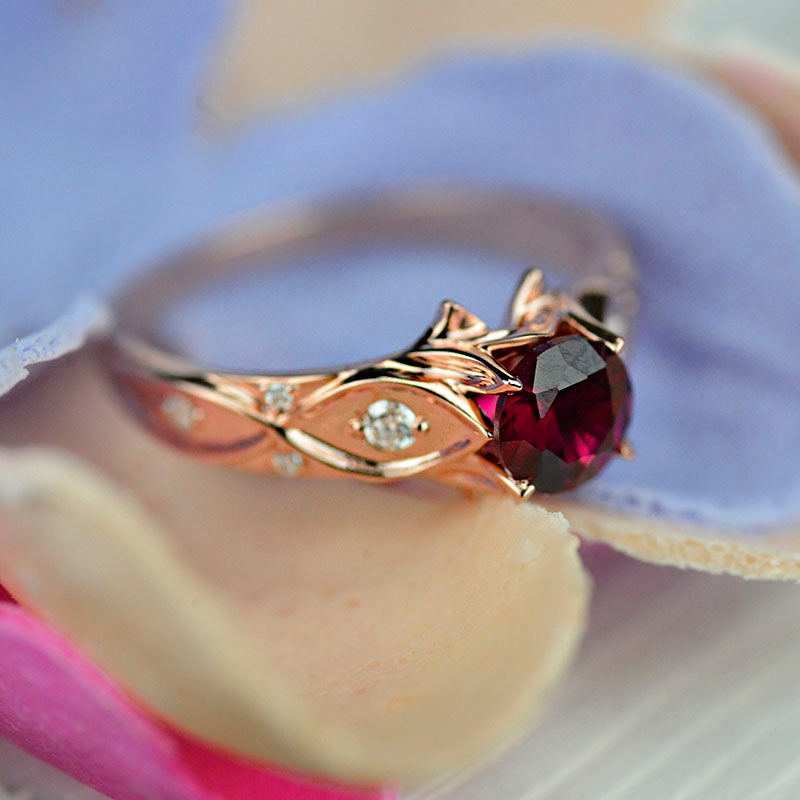 Giliarto Ruby Engagement Ring 14K Rose Gold Celtic Ring
