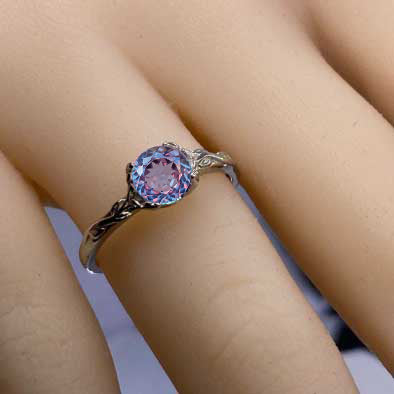 Floral Design 6mm Dome Cut Portuguese Cut Ethically Lab-Grown Alexandrite Ring