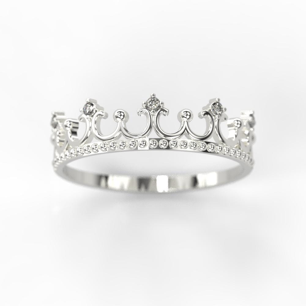 Diamond Royal Tiara Crown 14K White Gold Ring - Giliarto