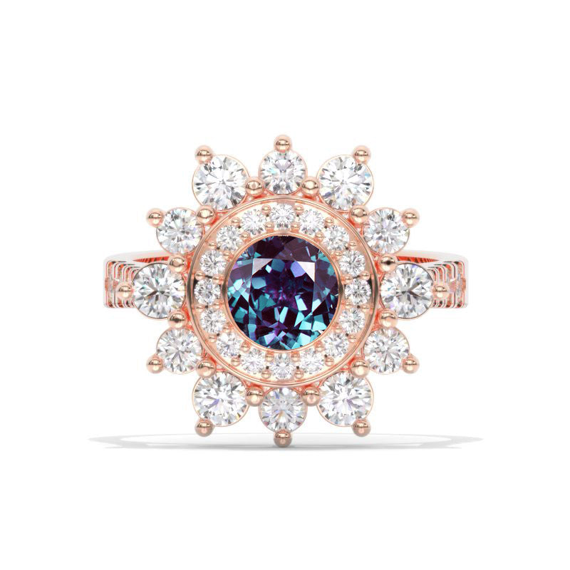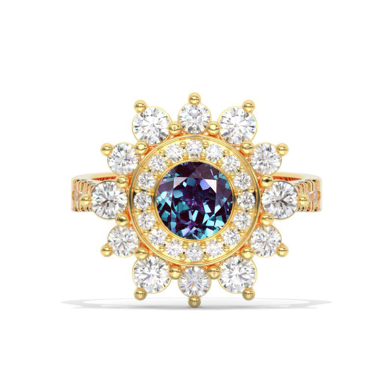 Double Halo Alexandrite Cluster Ring - Giliarto