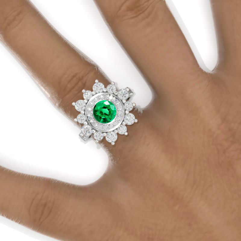 Double Halo Emerald Cluster Ring Model 1128 - Giliarto