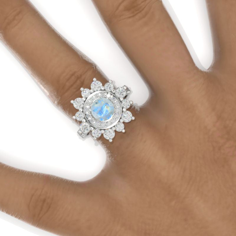Double Halo Genuine Natural Moonstone Cluster Ring - Giliarto