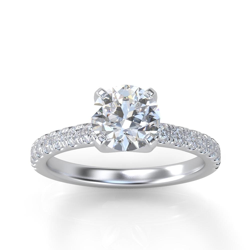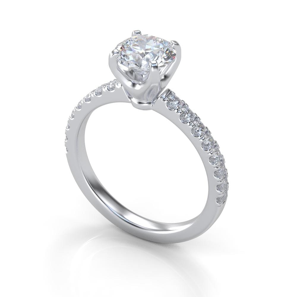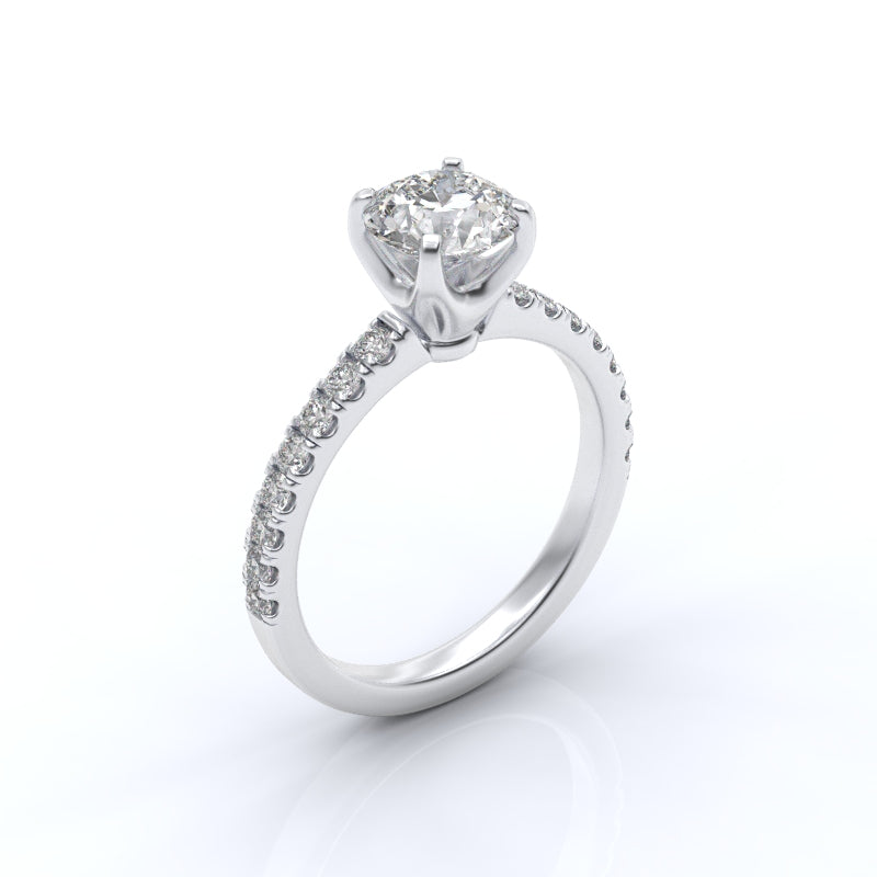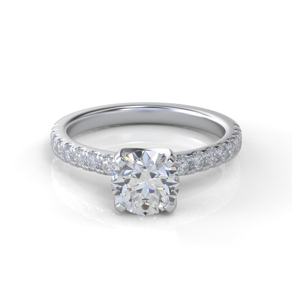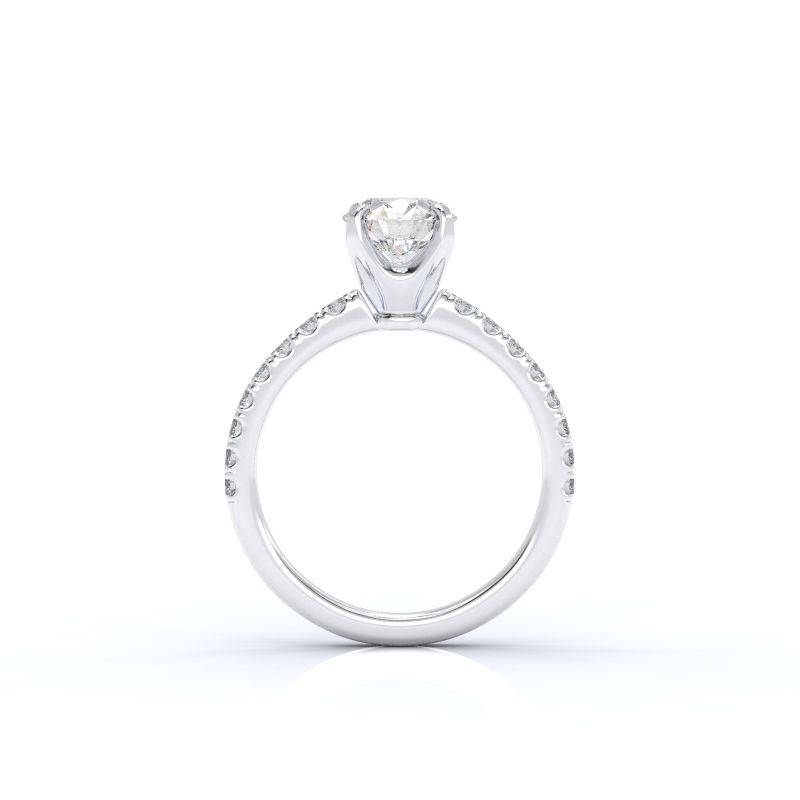 1.3 Carat Moissanite Stones ( Round 7 mm, D-Colorless, VVS1-Clarity, Ex-Cut, Ex-Polish, VG-Symmetry) and 16 Accent Stones (0.4 CTW G-H color, I1 clarity) with  14K White Gold.
