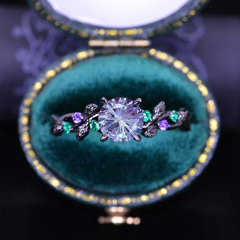 and 0.2 TCW Emerald and Amethyst Accents  in 14K Rose  Gold  Engagement Ring.