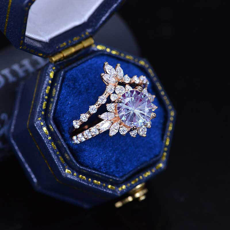 Fireworks Cut Alexandrite Halo Engagement Ring Eternity Ring Set