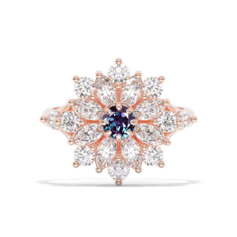 Floral Alexandrite Sunflower Cluster Ring - Giliarto