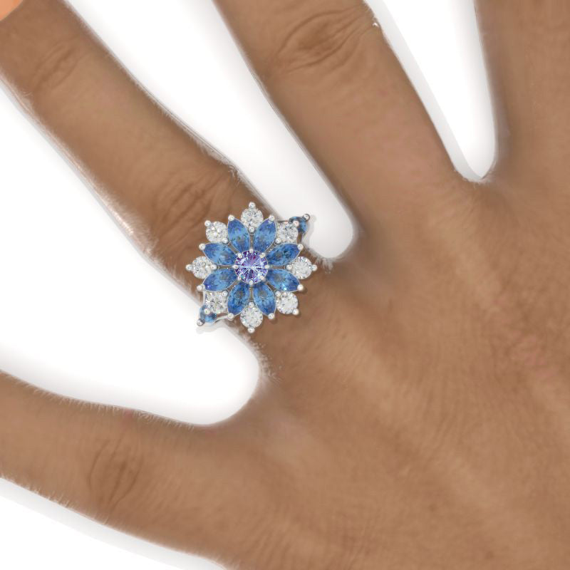 Floral Sapphire Fireworks Cut Alexandrite Sunflower Cluster Ring - Giliarto