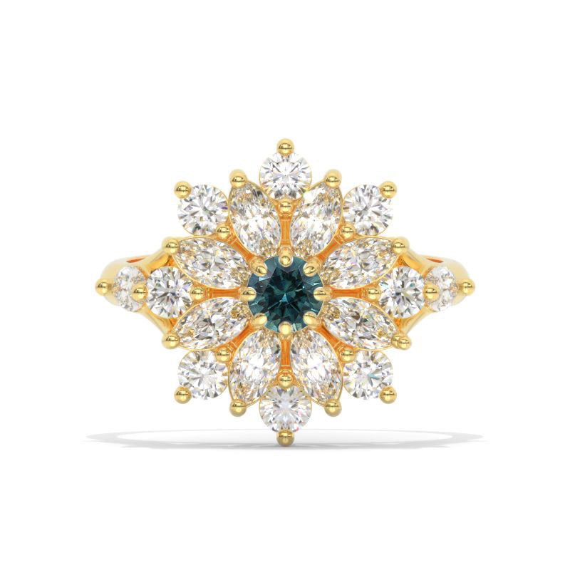 Floral Teal Sapphire Sunflower Cluster Ring, - Giliarto