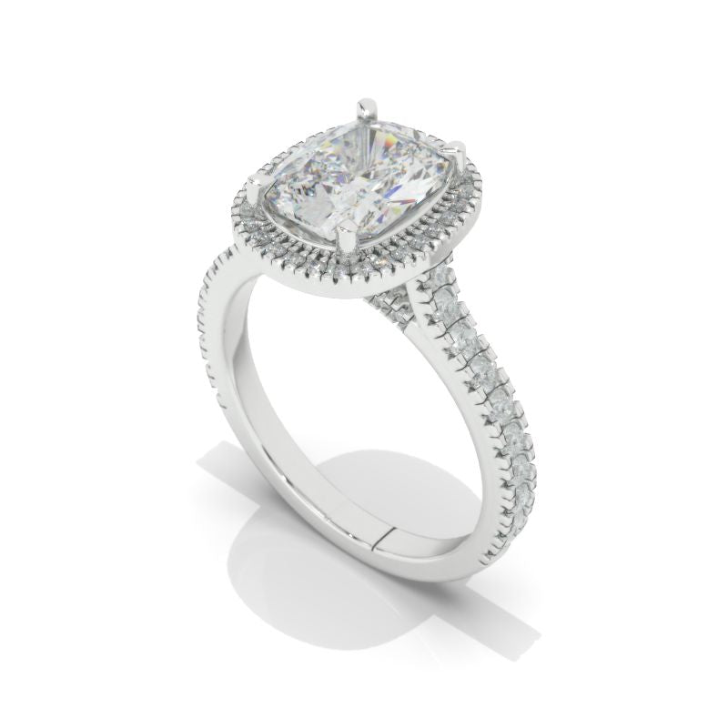 2.5Ct Cushion Moissanite 14K White Engagement Ring, Cushion Halo Engag - Giliarto