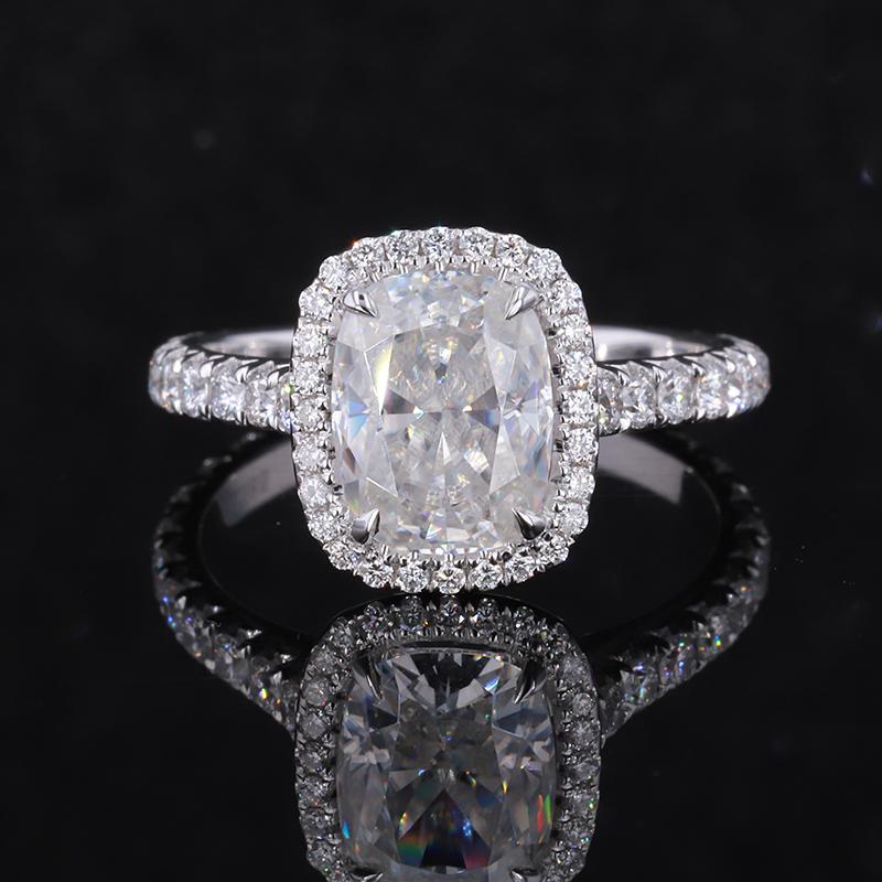 2.5Ct Cushion Moissanite 14K White Engagement Ring, Cushion Halo Engagement Ring