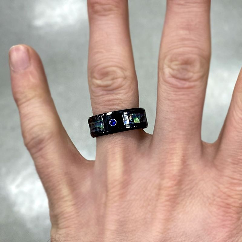 Genuine Abalone Shell with Sapphire Men's Tungsten Carbide Ring - Giliarto