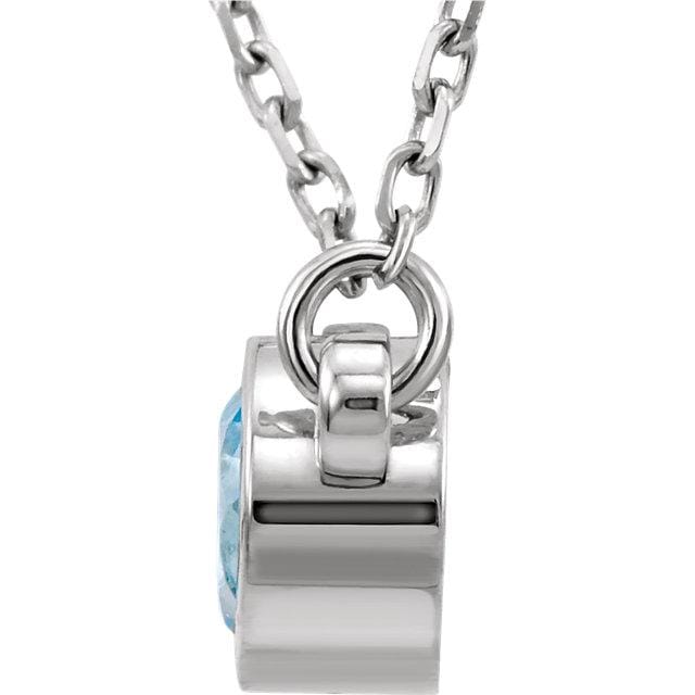 Genuine Round 4 mm Blue Zircon 14K White Gold Bezel Set with 16" Necklace