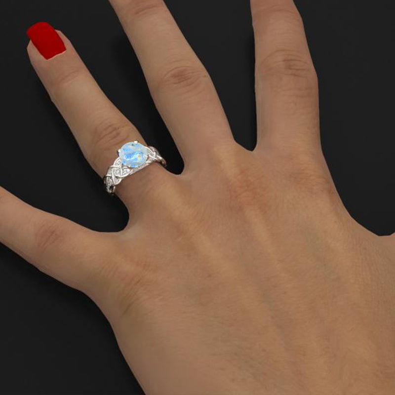 The default design option features 2 Carat Genuine Moonstone Round 8mm Created AAAAA -Grade Sapphire