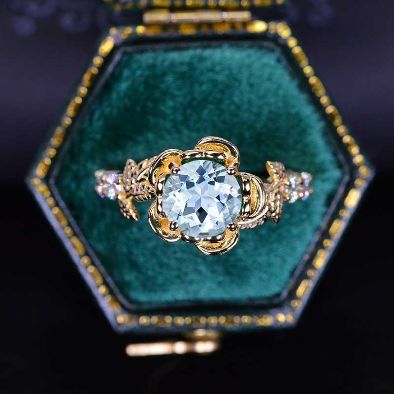 Genuine Natural Aquamarine Floral Halo Engagement Ring - Giliarto