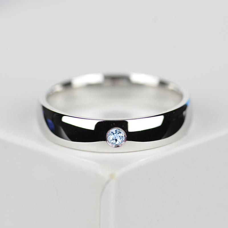 Round 2 mm, Genuine Natural Aquamarine I2-Clarity, Ex-Cut, Ex-Polish, VG-Symmetry in 14K White Gold Men's Ring.