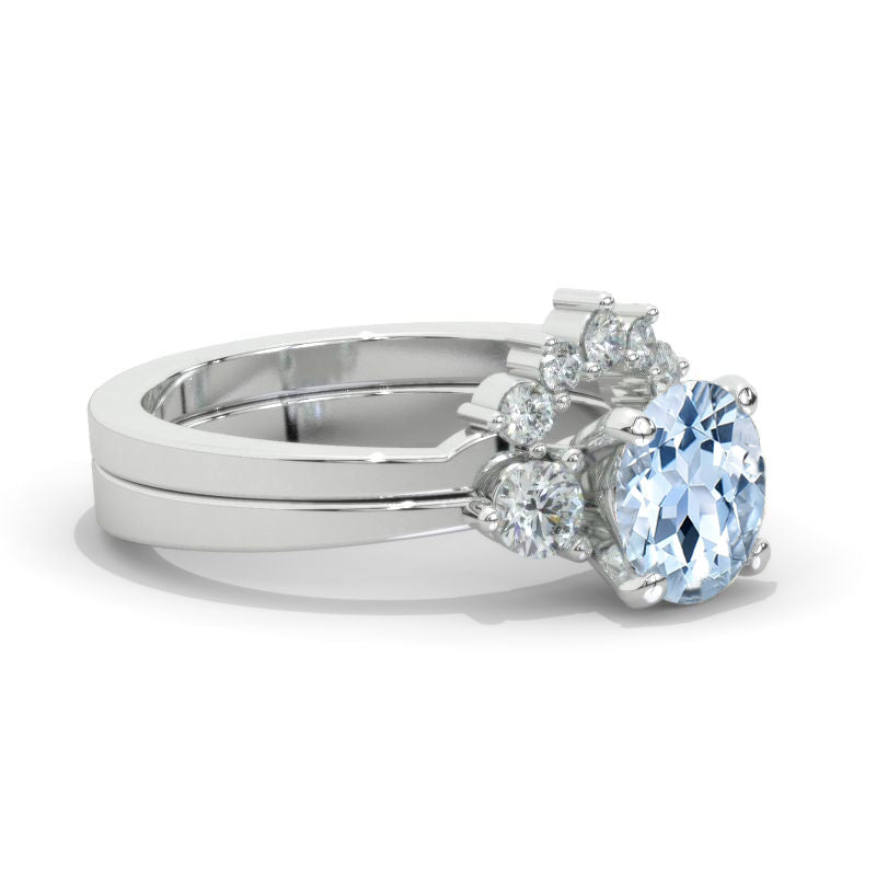 The default design option features Genuine Natural Aquamarine AAA+ Grade, , VG-Cut, Ex-Polish, VG-Symmetry Center Stone (Colorless)