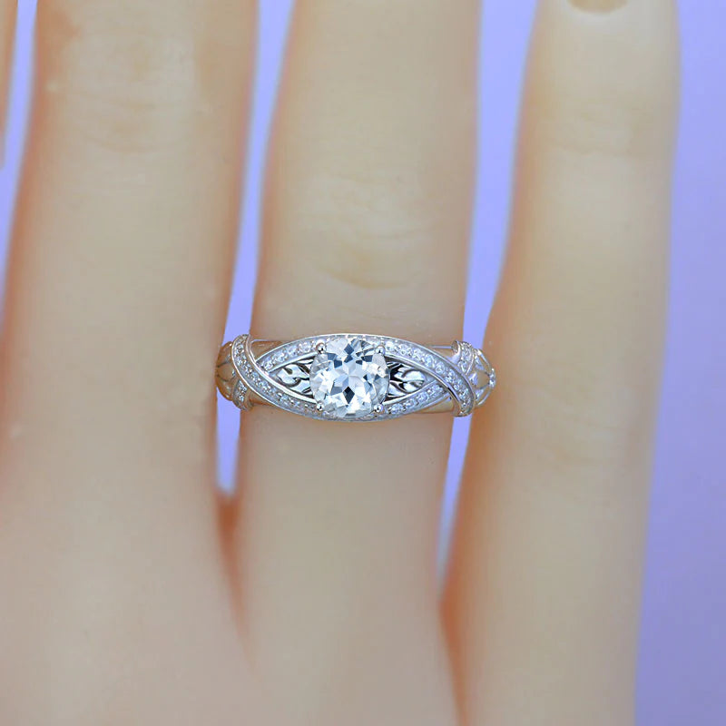 Genuine Natural Aquamarine White Gold Floral Engagement Ring - Giliarto
