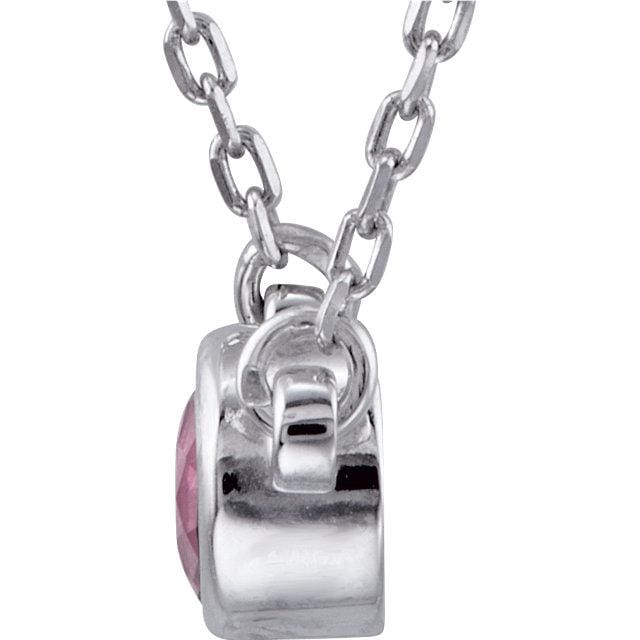 Pink Tourmaline Round 4mm Bezel With 16" 14K White Gold Necklace