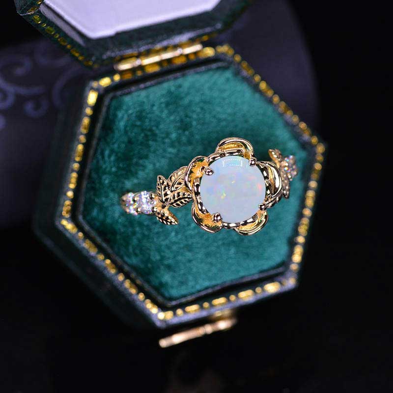 Genuine White Opal Floral Halo Engagement Ring - Giliarto