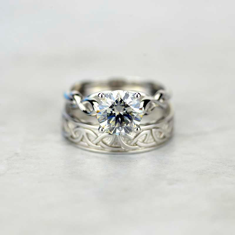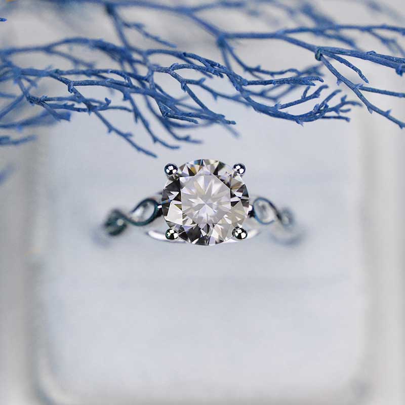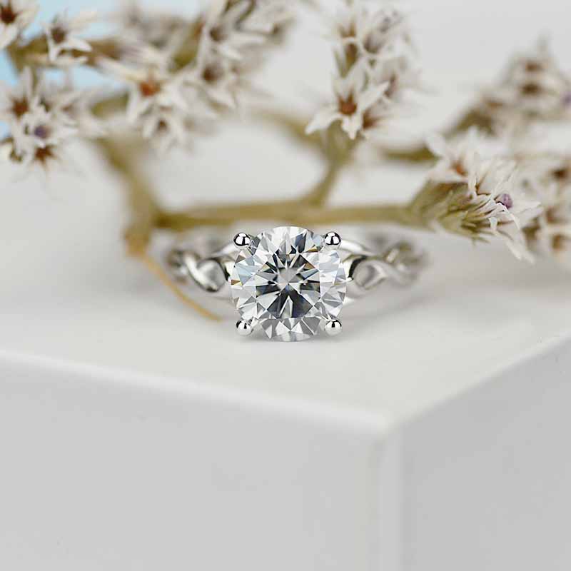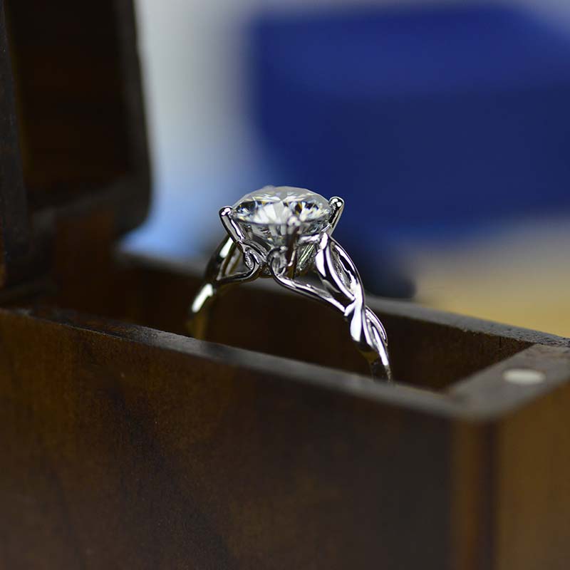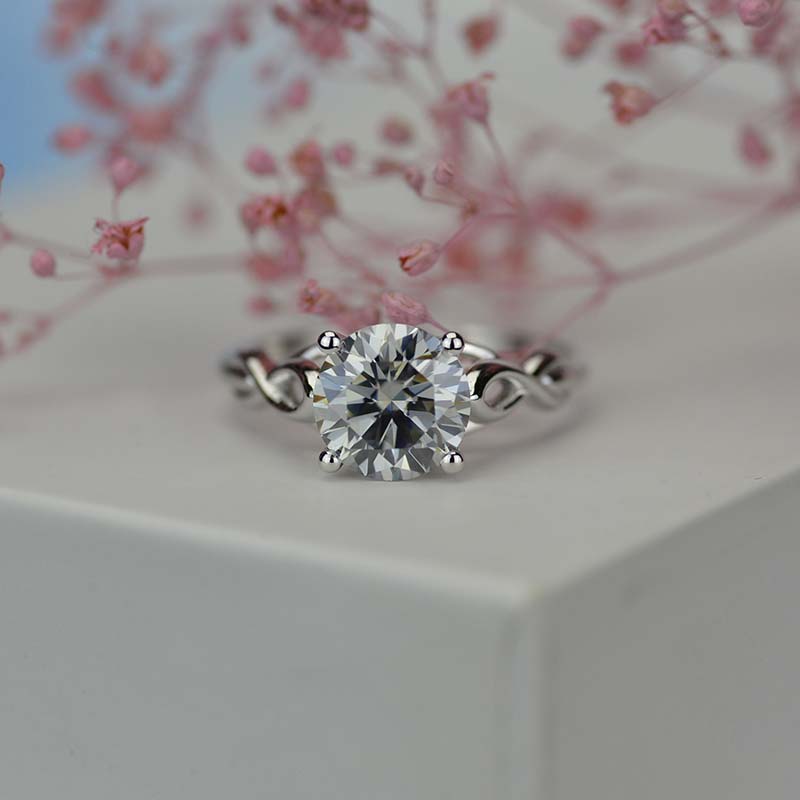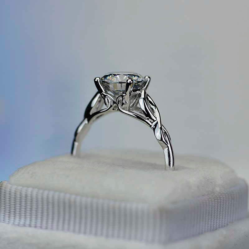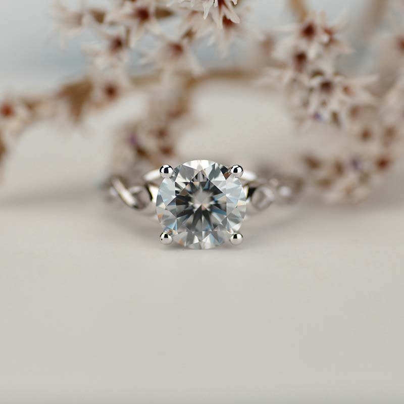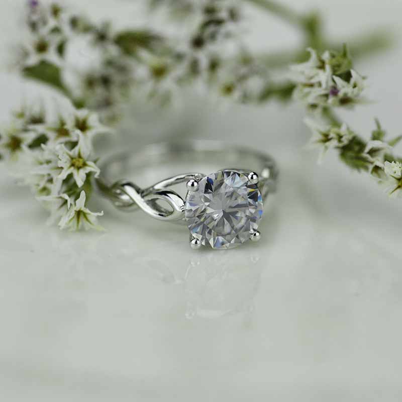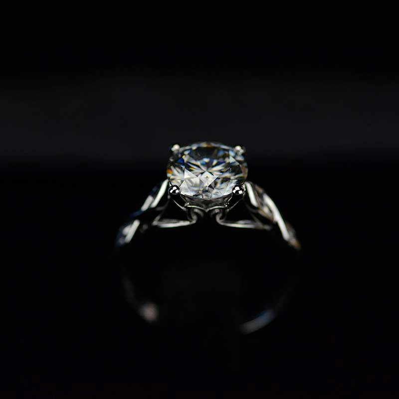 3.5 Carat Moissanite (RoundĀ 9 mm, Dark Gray-Color, VVS1-Clarity, Ex-Cut, Ex-Polish, VG-Symmetry)Ā  inĀ 14K White GoldĀ  Ring.Ā