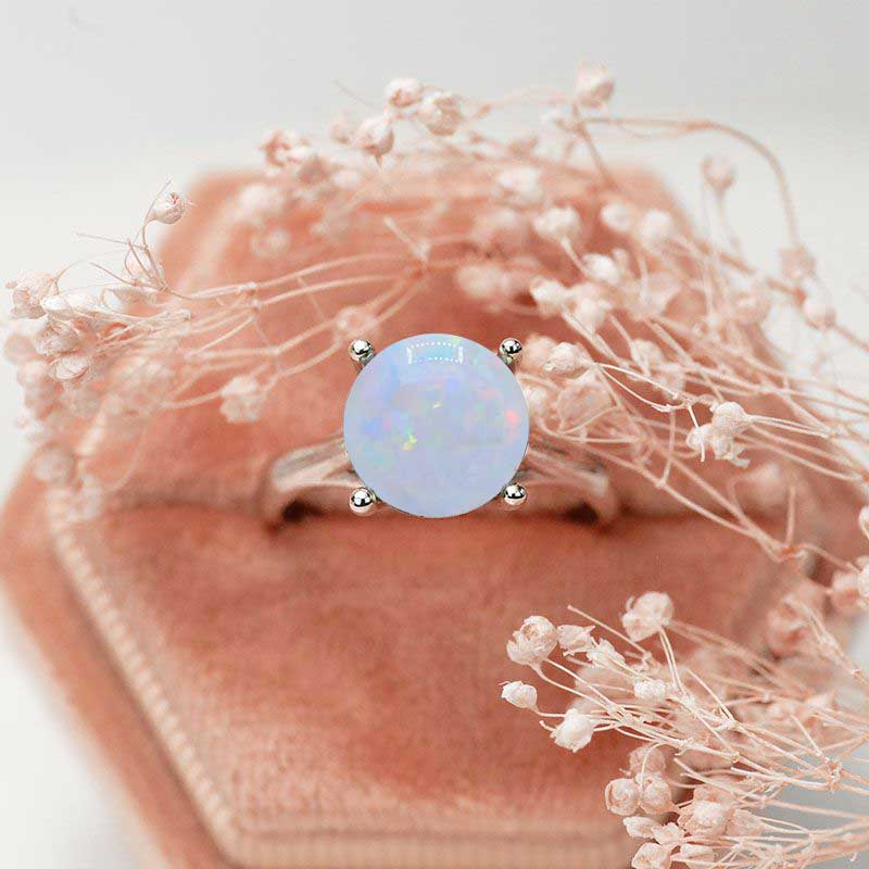 3.5 Carat Natural White Opal (Round 9 mm, Ex-Cut, Ex-Polish, VG-Symmetry)Ā  Ā in 14K White GoldĀ  Ring.Ā