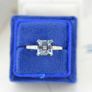 Giliarto 3 Carat Princess Cut Genuine Natural Aquamarine Stone 14K White Gold Ring