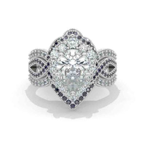 Giliarto Curved Colorless and Black Moissanite Wedding Band 14K White Gold for Model 970H2