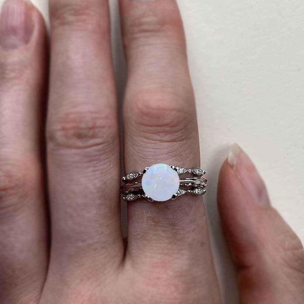 Giliarto White Opal Engagement Eternity Rings Eternity Set