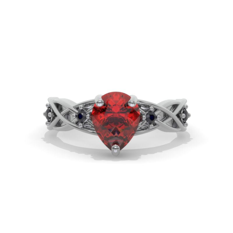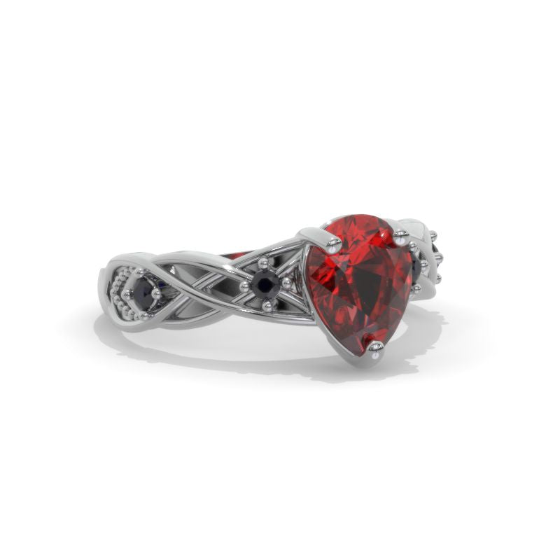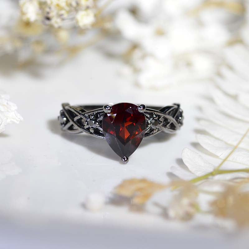Gothic Celtic Pear Cut Garnet Engagement Ring Silver 14K Black Gold Pl - Giliarto