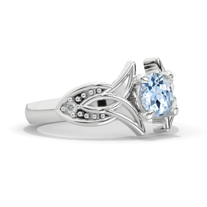 Knot Celtic Genuine Aquamarine Engagement Ring 14K White Gold - Giliarto