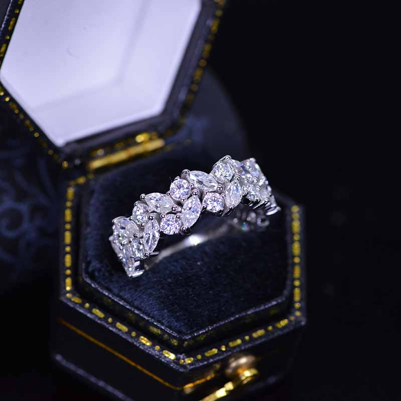The default design option features 19-4x2mm Marquez with 19-2.25mm Round stones. 2.2 CTW Giliarto Certified Moissanites D-Colorless, VVS1-Clarity, VG-Cut, Ex-Polish, VG-Symmetry Stone ( D-Colorless)