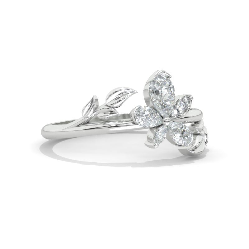 Floral Ring Approximately 1.5+ CTW Carat LAB-Grown Diamond D-Colorless, VVS1-Clarity, VG-Cut, Ex-Polish, VG-Symmetry Center Stone in 14K White Gold Ring.
