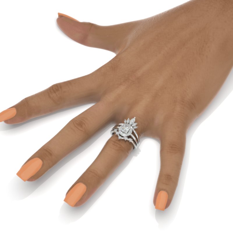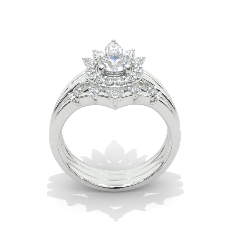 and two Pear Accents Set with Colorless LAB-Grown Diamond Accent stones in 14K White Gold Engagement Ring.