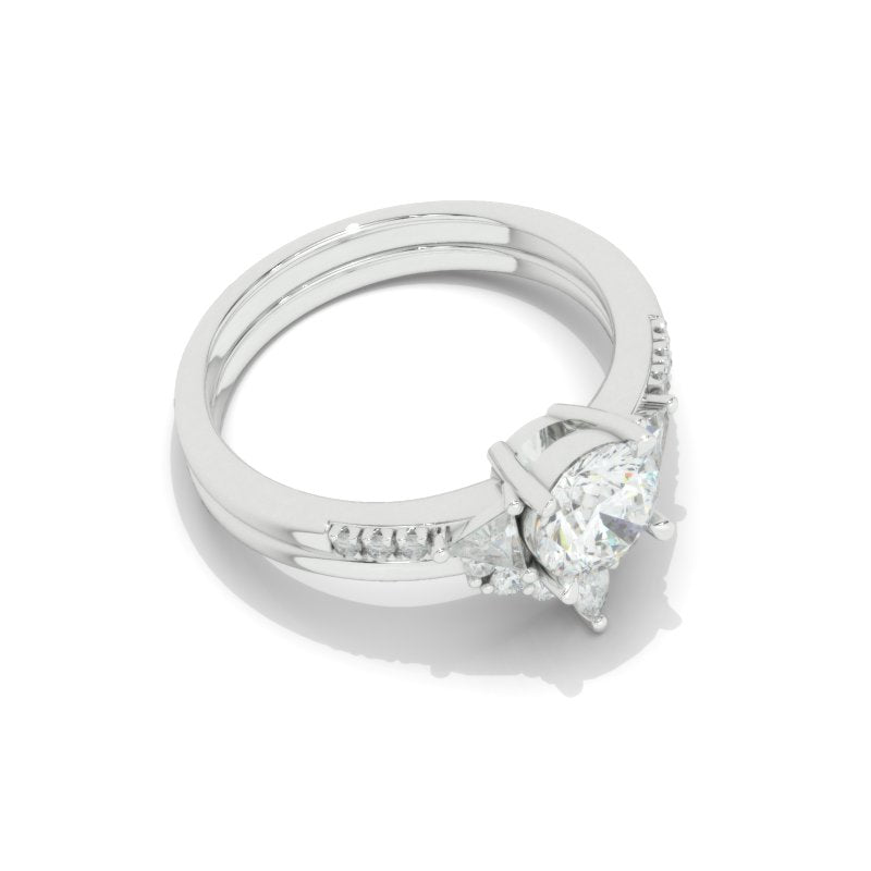 and two Triangle Accents in 14KĀ White Gold Engagement Ring.Ā