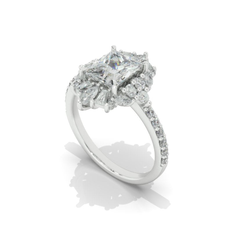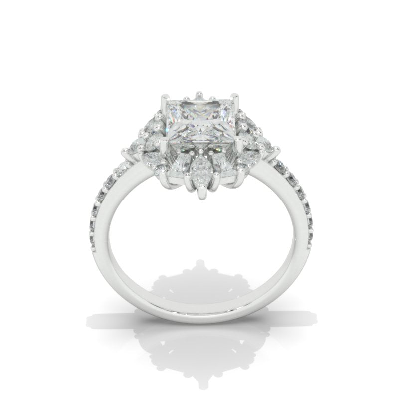 The default design option features 8x6mm LAB-Grown Diamond Radiant CutĀ Center StoneĀ D-Colorless, VVS1-Clarity, VG-Cut, Ex-Polish, VG-Symmetry