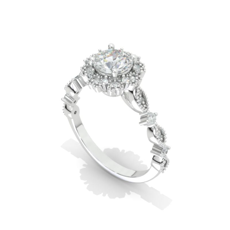 LAB-Grown Diamond Vintage Shank Gold Engagement Ring Model 517