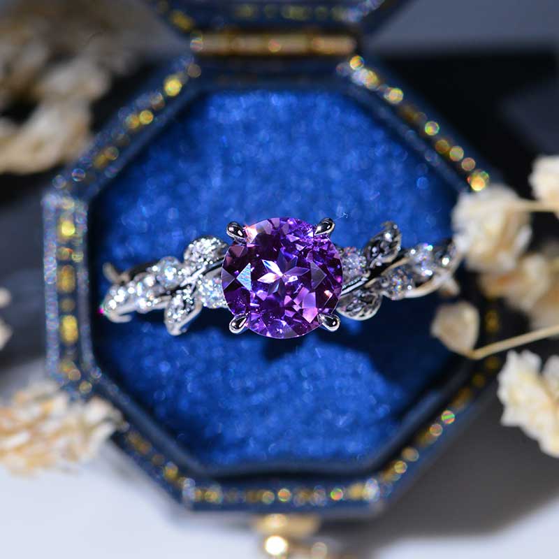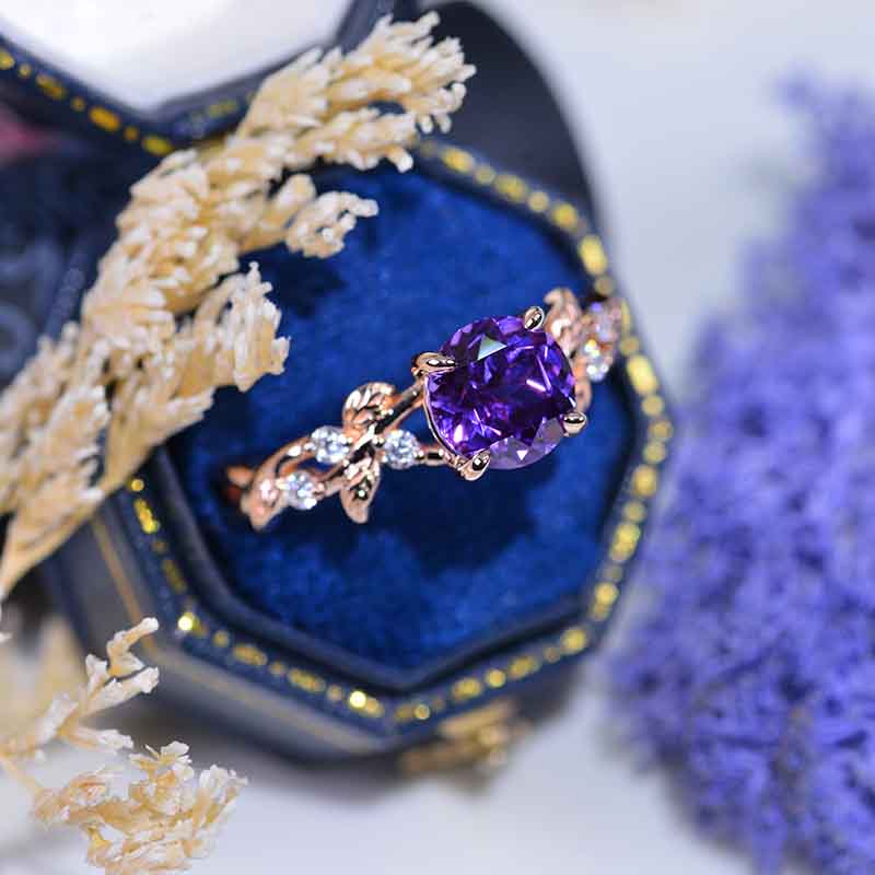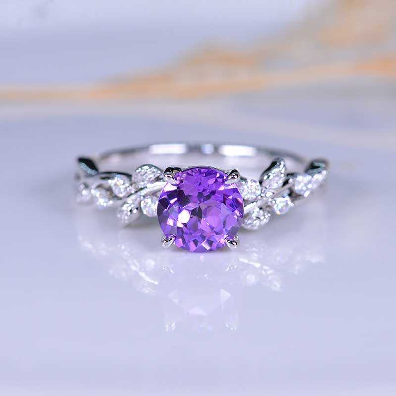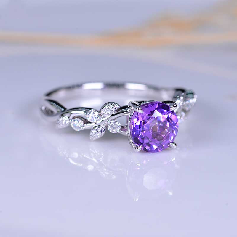 Lavender Purple Sapphire Floral White Gold Engagement Ring - Giliarto